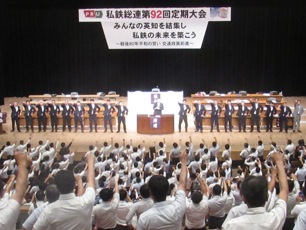 私鉄総連は7月30日から2日間、熊本県熊本市「市民会館シアーズホーム夢ホール」で第92回定期大会を開き、2025年度運動方針など7議案を決定した。大会には全国から824人が結集した。